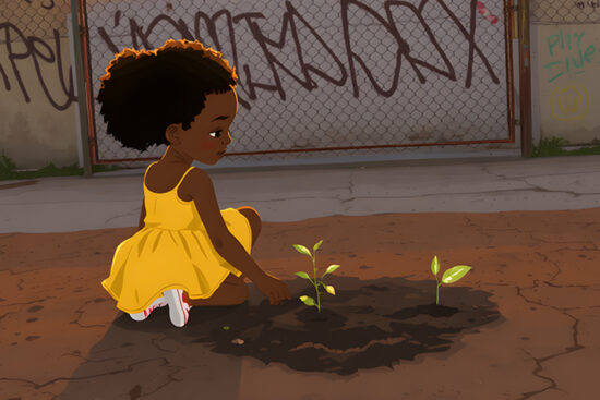 "Your Father who sees in secret will reward you."– Matthew 6:4 – A child plants a sunflower seed in an…