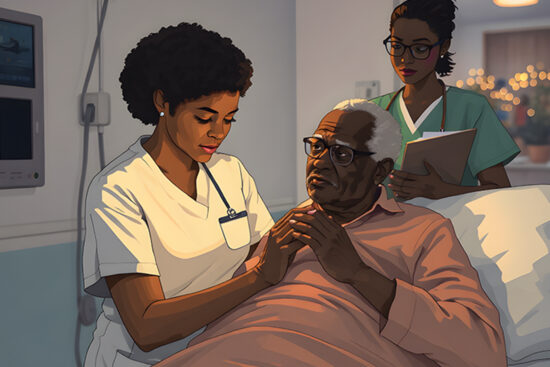 A tired nurse stays late to comfort an elderly patient who has no family visitors. She listens to his stories,…
