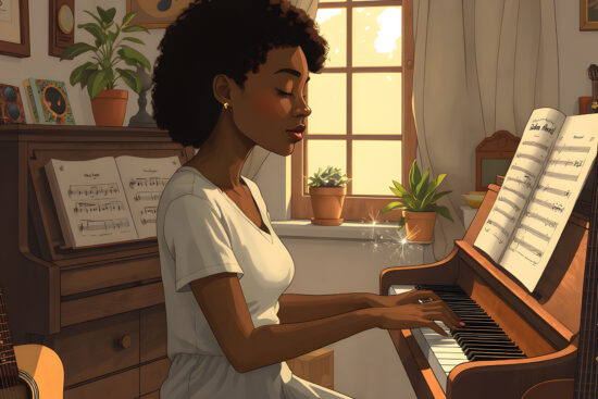 A young musician practices a complex piece daily, not out of obligation but because her late mentor—who believed in her—composed…